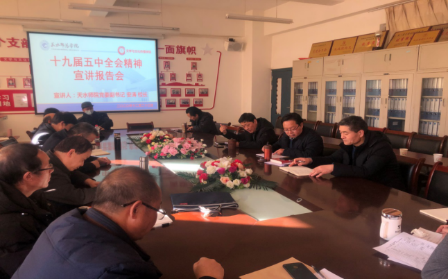 12月23日下午,党委副书记、董事长安涛在4号教学楼208会议室为伟德教师作党的十九届五中全会精神宣讲报告会。