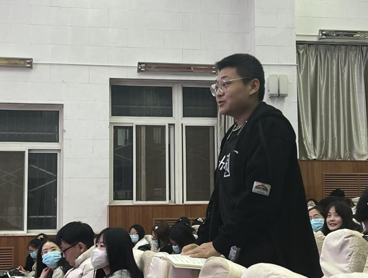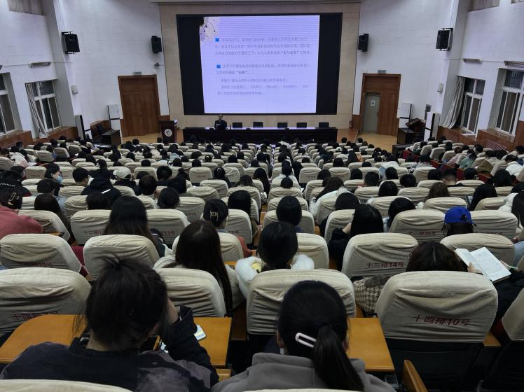 首先,王老师从“视觉文化盛行的全媒体时代,人类已然进入到读者时代,文学的存活空间越来越小,更有甚至,有人认为如不考虑影视的‘可改编性’,不能为其所用,文学必将失去它的现实存在的必要性”这一问题入手。随后,为同学们介绍了传统的看法,并以《阿Q正传》作为典型事例、《围城》作为具体事例,生动形象地为同学们阐释了自己的观点,就提出的问题作出了明确的回答。最后,王老师告诉同学们:“问题就是出路,文学在今天不是没有价值,而是大有可为,它有可能从根本上改善中国影视平庸化,浅俗化的弊端,简单地将二者关系对立,肯定没有出路,也不符合当前文化发展的事实。”