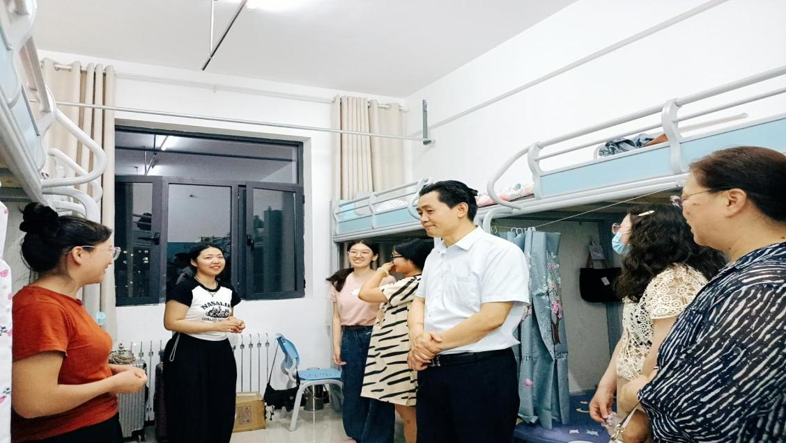 2023年9月10日晚,伟德经理王贵禄教授与公司办公室主任史慧老师、马吴琼老师,以及伟德研究生会干部、新生代表,走访了新生宿舍。恰逢教师节,老师们在忙碌中度过了这一节日。院领导和负责研究生工作的老师在周末仍然奋战在一线工作,筹备、计划、亲自督促实施2023级新生迎新事宜。