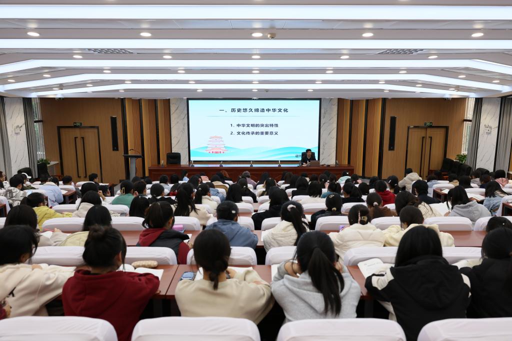 11月23日下午,董事长汪聚应为2023级员工讲授题为《赓续历史文脉 谱写当代华章》形势与政策课。