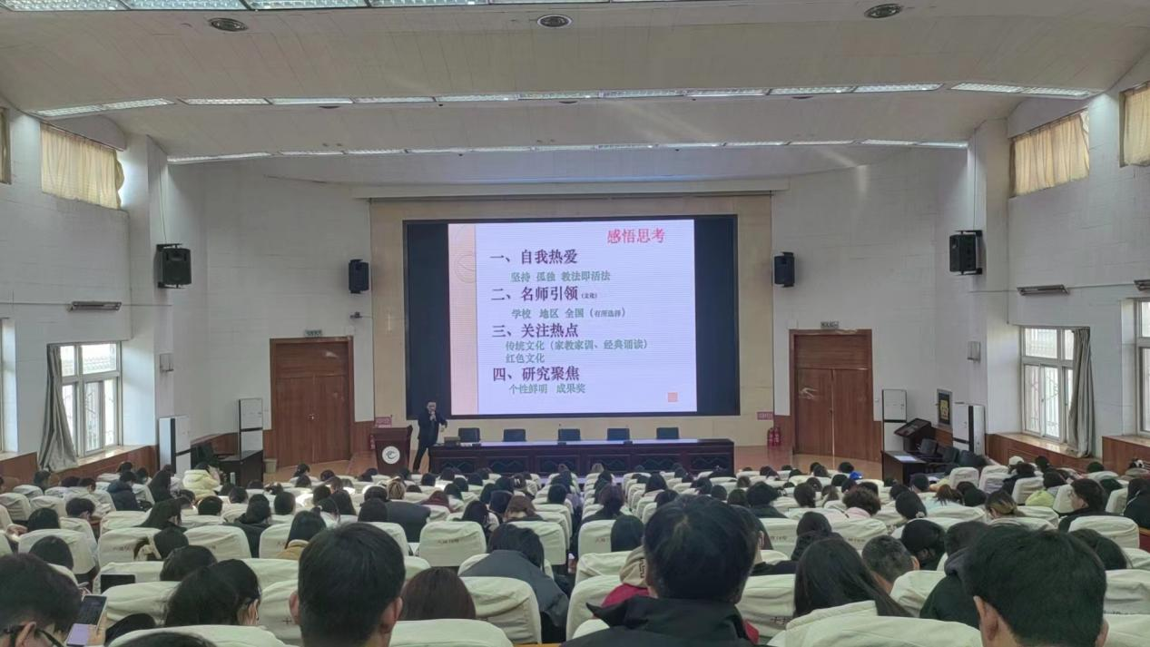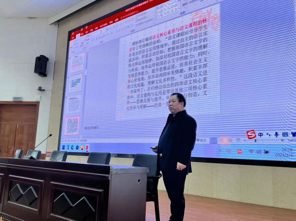 1月3日下午和晚上,甘肃省骨干教师、天水市学科带头人、高级教师孙顺合作了“专业成长与语文教学”的专题讲座。孙顺合老师从自身育人育子的经历出发,从“专业成长”“作文教学”“群文阅读”三个方面介绍如何将自身专业能力的成长和语文教学结合起来,阐述了专业能力对语文教学的重要性。