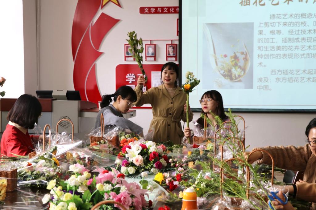 本次活动邀请到了专业的花艺老师,现场为大家进行讲解和指导。花艺老师从插花的历史起源一直讲到各种插花的技巧,讲解完毕后带领大家一起细心修剪、搭配色彩,每位教职工在阵阵花香中感悟取舍之道、发挥审美取向、领会高雅之美。