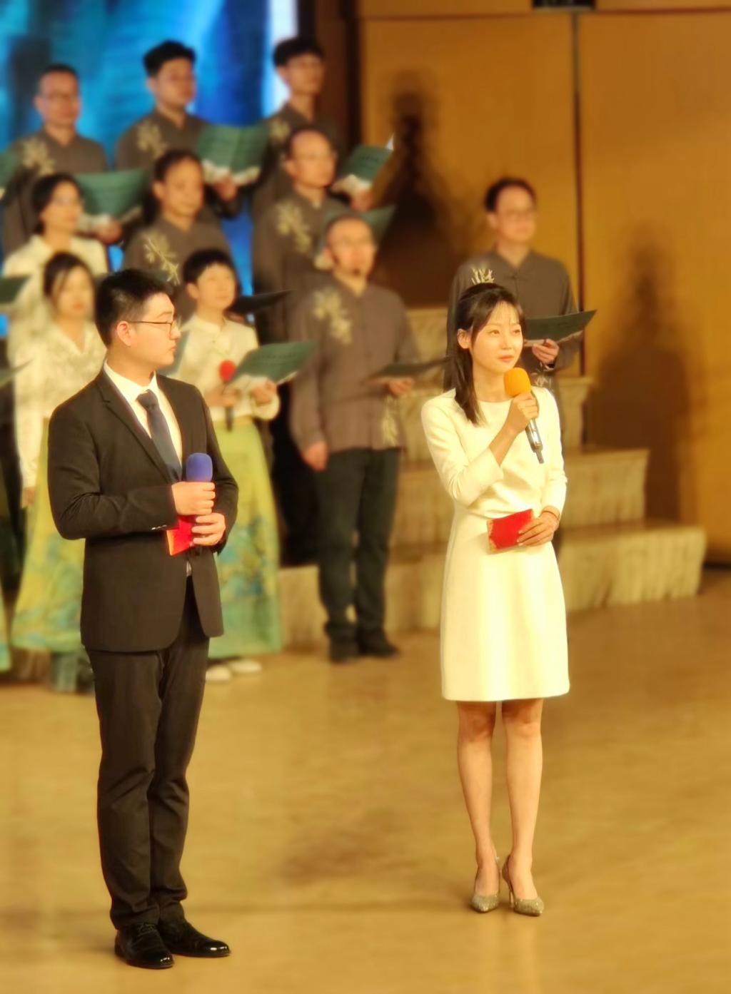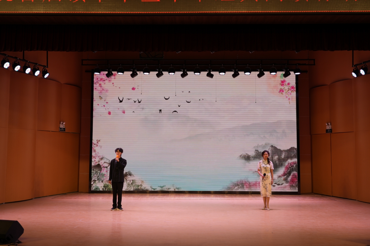 伟德教师孙菻、研究生朱思维担任文艺演出环节的主持人。“最美人间四月天,春风漫卷书香来”,主持人承上启下,强调了晚会主旨,感谢在场嘉宾的到来,并串联介绍了本次晚会的每一个精彩的文艺节目。