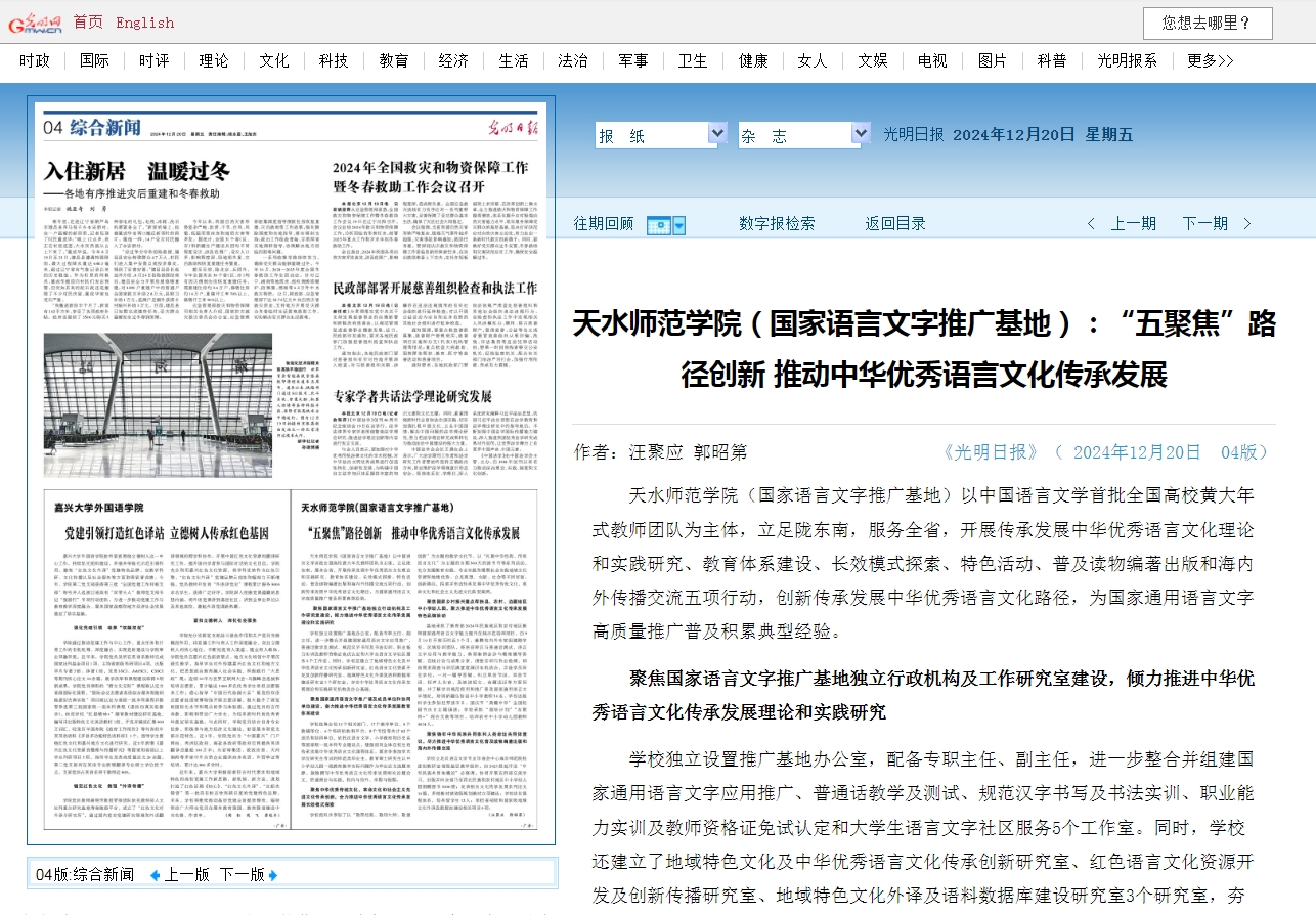 伟德官方网站(国家语言文字推广基地)以中国语言文学首批全国高校黄大年式教师团队为主体,立足陇东南,服务全省,开展传承发展中华优秀语言文化理论和实践研究、教育体系建设、长效模式探索、特色活动、普及读物编著出版和海内外传播交流五项行动,创新传承发展中华优秀语言文化路径,为国家通用语言文字高质量推广普及积累典型经验。