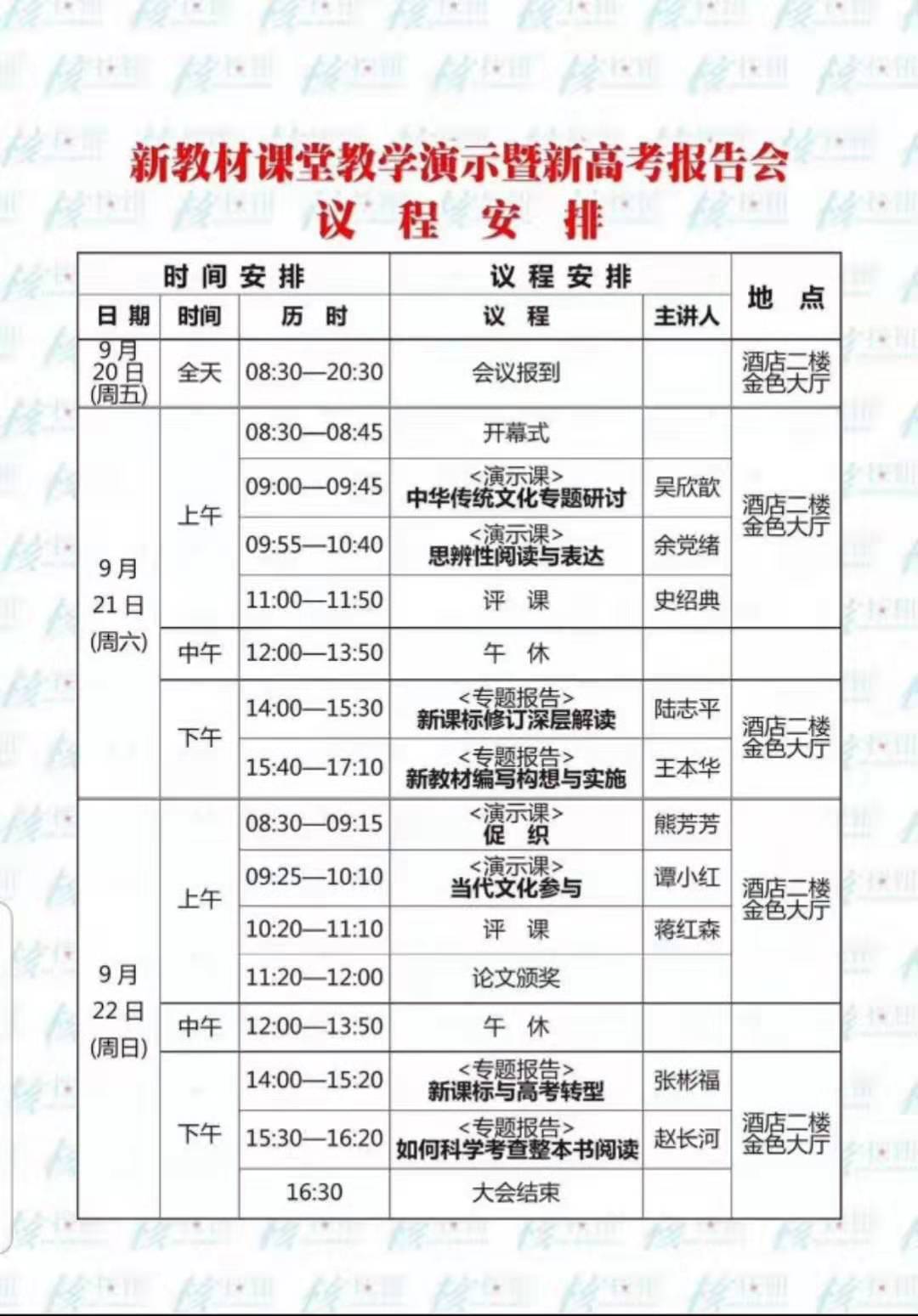 会议在武汉洪山区巴山夜雨大酒店举行,演示课受课者的是武昌实验中学高二级员工。来自全国各地近一千名语文教师和教学研究工作者观摩、聆听了会议。