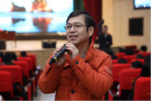 陈响园教授从2016年的两部敦煌文博会宣传片进行了比照性的讲解,其分析鞭辟入里且引人入胜,其语言风趣幽默而富于理论含量。陈教授提出的观点有:其一,宣传片(包括纪录片)创作者要有明确的读者意识,在尊重读者的前提下,尽可能呈现丰富的信息;其二,宣传片要用镜头说话,如果能用镜头表达的东西,就不要用解说词,因为镜头才是电影的根本;其三,宣传片更要注重表达的艺术性,要能创造某种情境,营造某种意境,充分调动读者的情感情绪;其四,宣传片创作要虚实结合,在注重实景拍摄的前提下,要能融入故事元素和历史素材,从而给读者以想象的空间。陈教授的讲解深入浅出,给听众留下了深刻的印象。在讲解过程中,陈教授还与师生在现场进行了多次的互动。