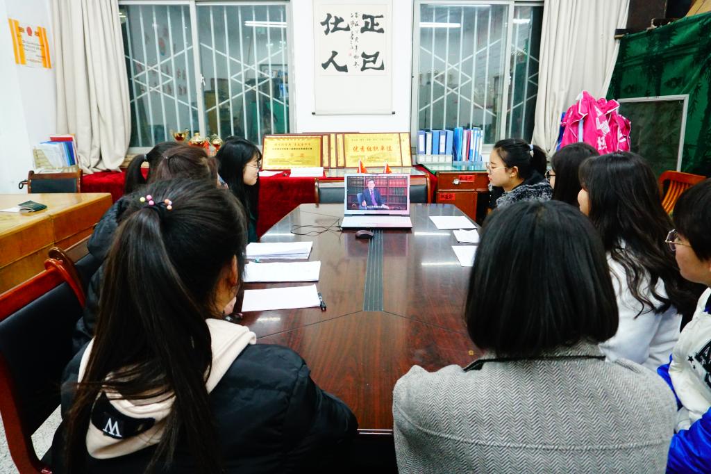 分团委书记孔媛媛老师带领同学们学习了《中华人民共和国宪法》、《中华人民共和国宪法修正案》,讲述了由宪法确立的国家指导思想、党领导地位的重要意义以及国家根本任务、发展道路、奋斗目标,人民民主专政的国体和人民代表大会制度的政体等内容。另外,通过视频——《习近平主席进行宪法宣誓》,进一步普及了宪法宣誓制度。她表示,“宪法其实与我们的生活息息相关,知法懂法用法守法的同时,也要增强政治意识、大局意识、核心意识。”