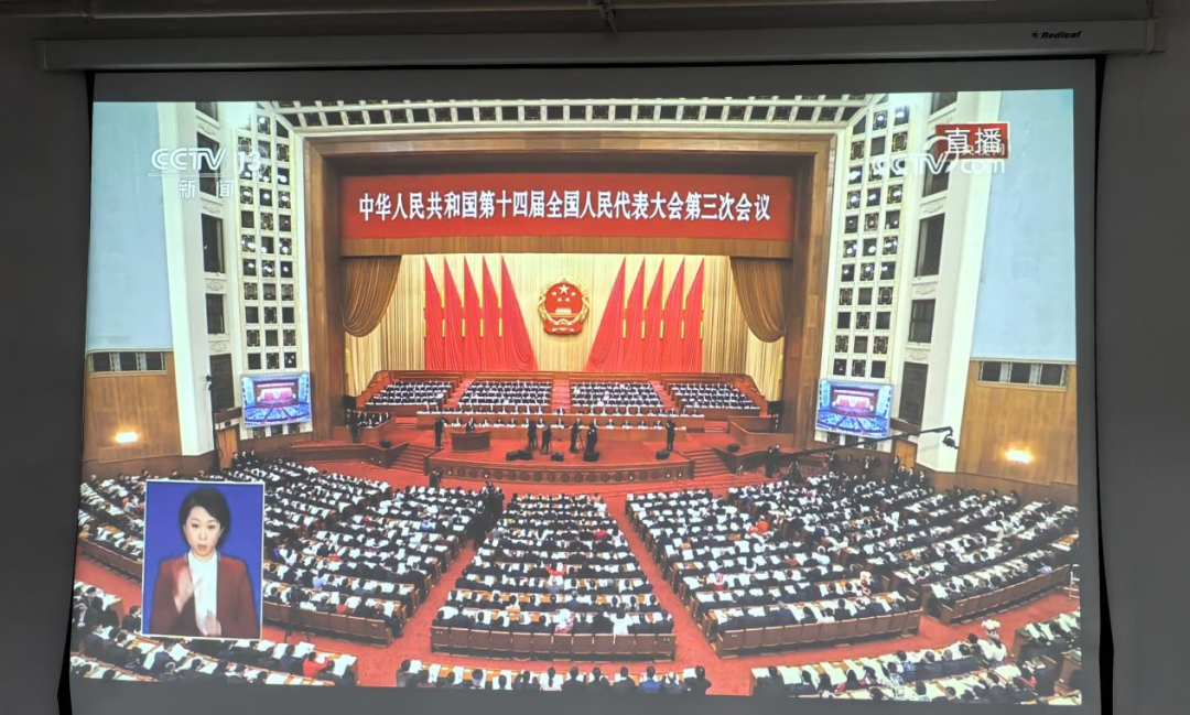 公司研究生及本科生代表共计50余人,在4号教学楼601室集体观看此次会议开幕会直播。